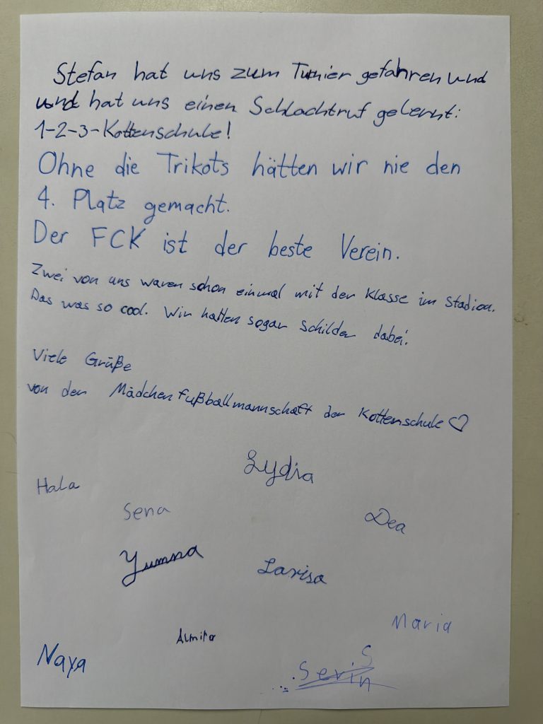 Fußballturnier Beitrag veröffentlicht:26. Februar 2026 Beitrags-Kategorie:Allgemein Die Mädchen der Kottenschule erreichten, dank der neuen und vom 1. FCK gesponsorten Trikots, beim diesjährigen Fußballturnier den 4. Platz. Das könnte dir auch gefallen Die Piraten kommen 5. März 2023 Öffnungszeiten des Sekretariats während der Sommerferien 15. Juli 2022 Zoo 21/22 Klasse 2 10. Juli 2022